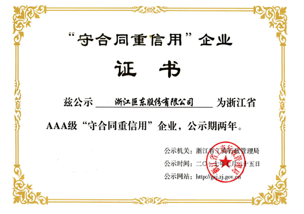 • 2017年浙江省AAA級守契約重信用企業(yè)