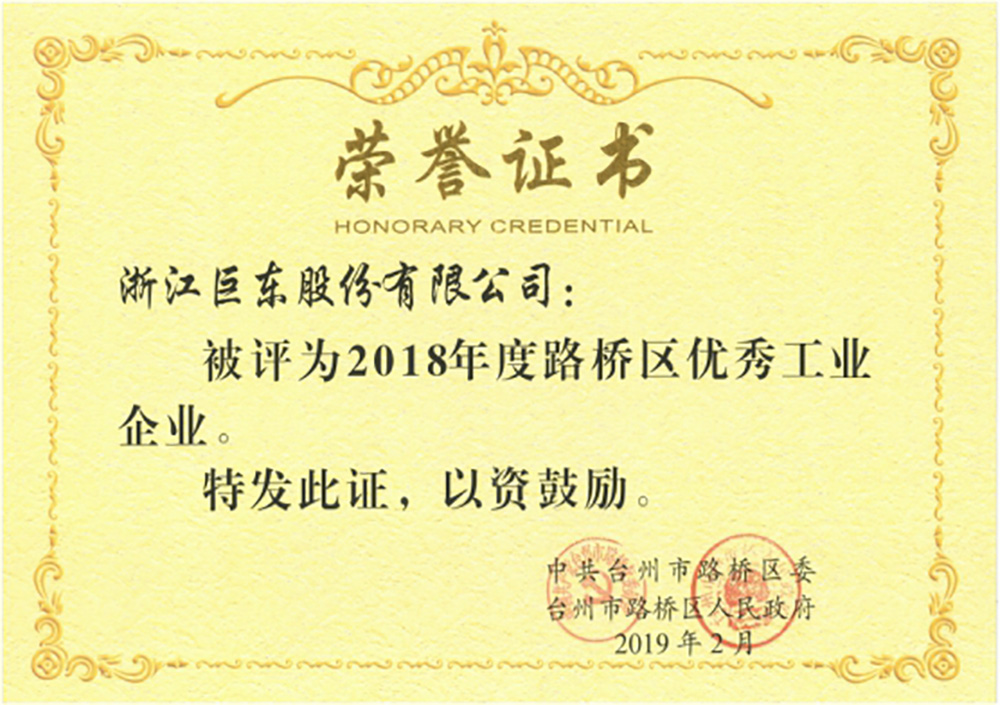 • 2018年度路橋區(qū)優(yōu)秀工業(yè)企業(yè)