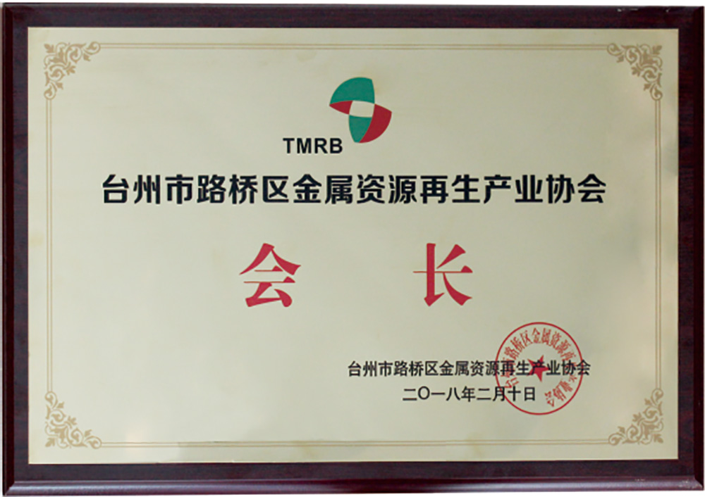 • 臺州市路橋區(qū)金屬資源再生産業(yè)協(xié)會會長